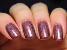 I'll just get this out of the way up front: formula on all of these was perfect, zero issues to report!  I've used two coats for each, although a couple could be fine in just one careful coat.  Swatches are without top coat, although I have worn some of them with top coat (LaCC 2013) and am happy to report that it doesn't dull the holo effect!  I have included photos in both direct sunlight and artificial light for each polish.